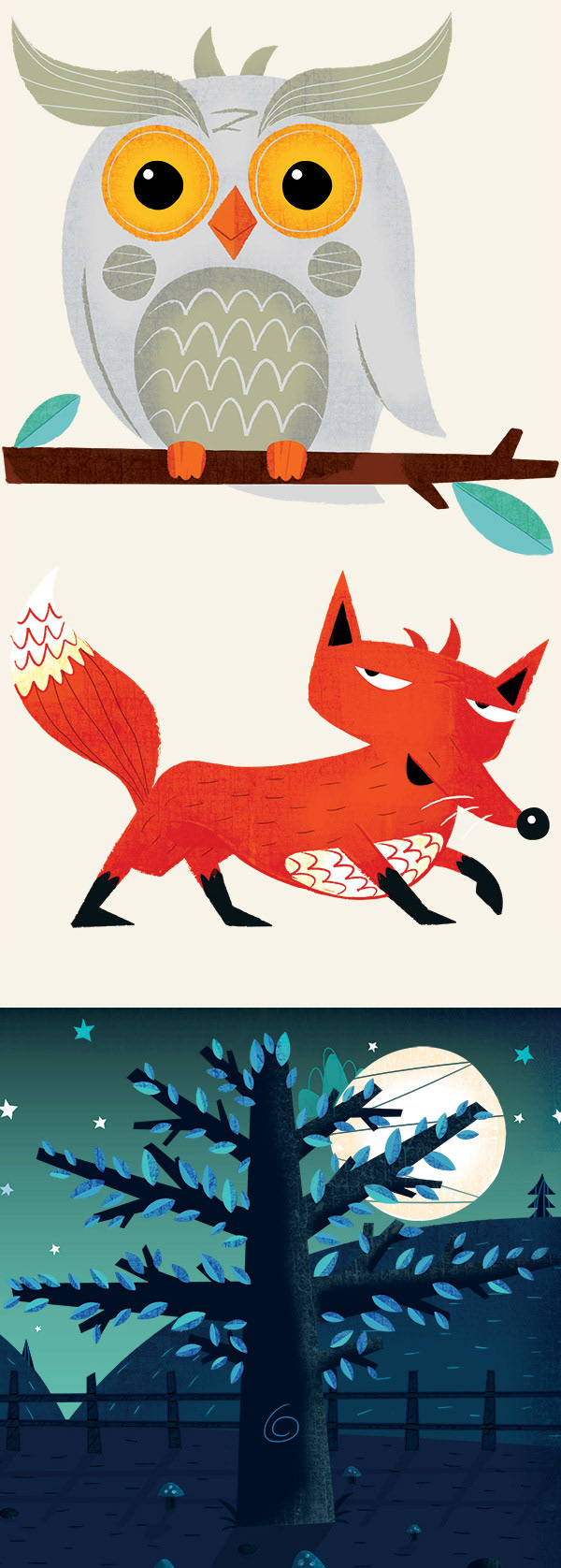 Commission for Artburst. Part of a wall chart and some night animals for kids to arrange and play about with.